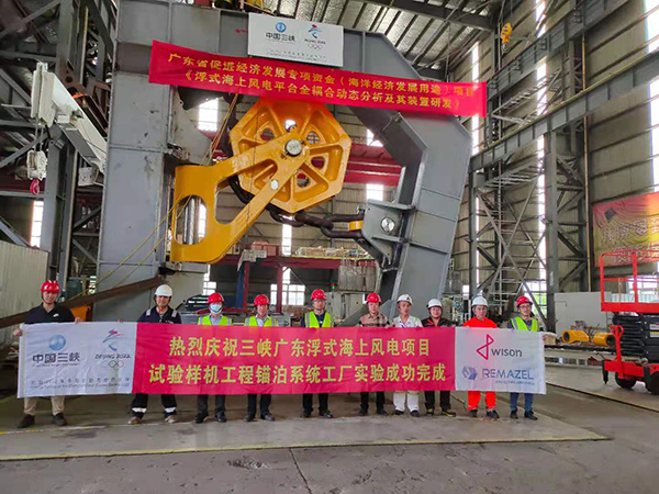 熱烈慶祝三峽廣東浮式海上風電項目試驗樣(yàng)機工程錨泊系統工廠實驗成(chéng)功完成(chéng)